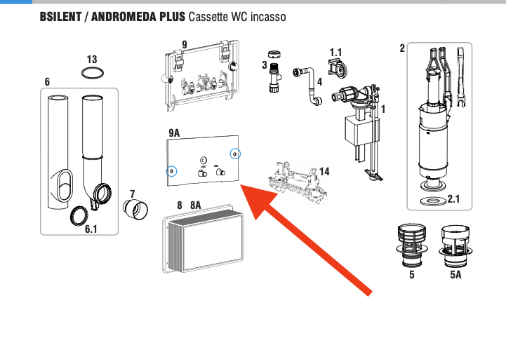 Ricambio originale per cassetta incasso WC BAMPI Mod. ANDROMEDA
