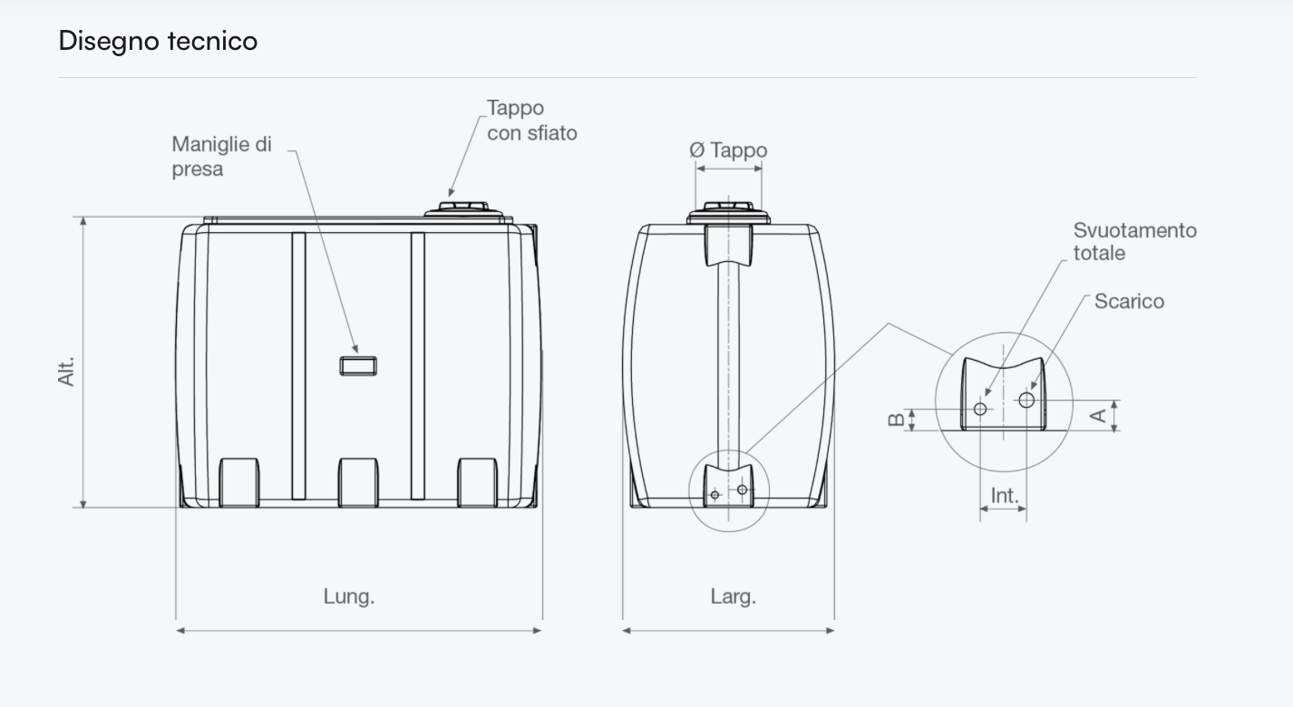 - Predisposizioni incorporate filettate femmina da 1″ scarico, svuotamento totale 3/4″
